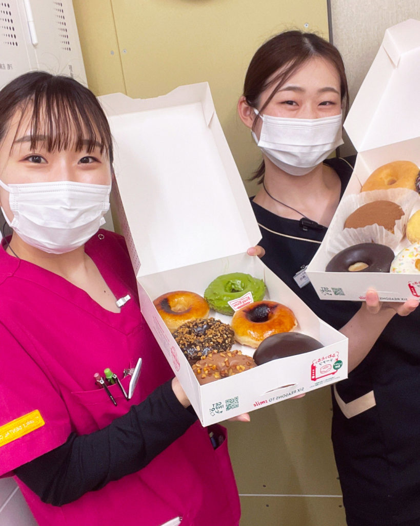 ドーナツの差し入れを頂きました!かわいくて美味しそうな見た目にスタッフ全員テンション上がってます♪この後、ジャンケンで熾烈な争奪戦が行われました(笑)