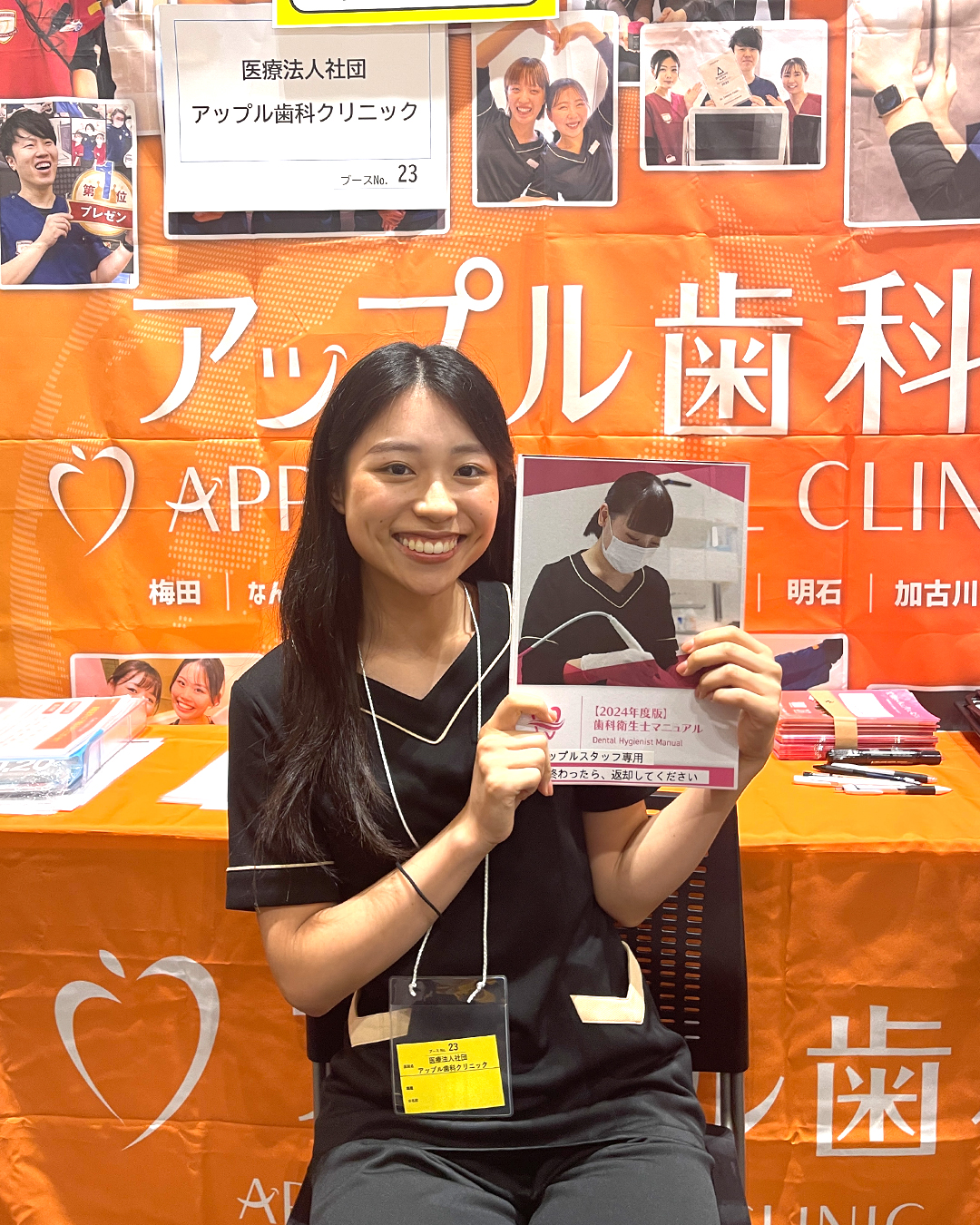 衛生士専門の就活フェスに参加してきました〜!たくさんの方から「アップルのブースはとても目立っていた!」とお褒めいただきました(笑)。ブースにお集まりいただいた皆様、本当にありがとうございました。今後もこのようなフェスに積極的に参加していきますので、次回もぜひお越しください!もちろん、医院見学も大歓迎です〜!