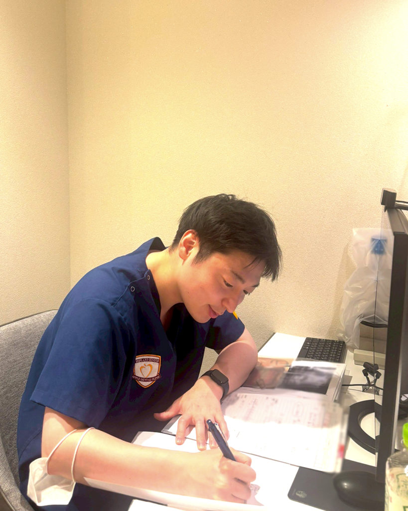 • 診療後も元気いっぱいな岡田先生。忙しい日も疲れを見せないところは流石です!